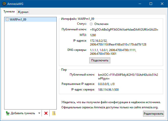 AmneziaWG жмём кнопку "